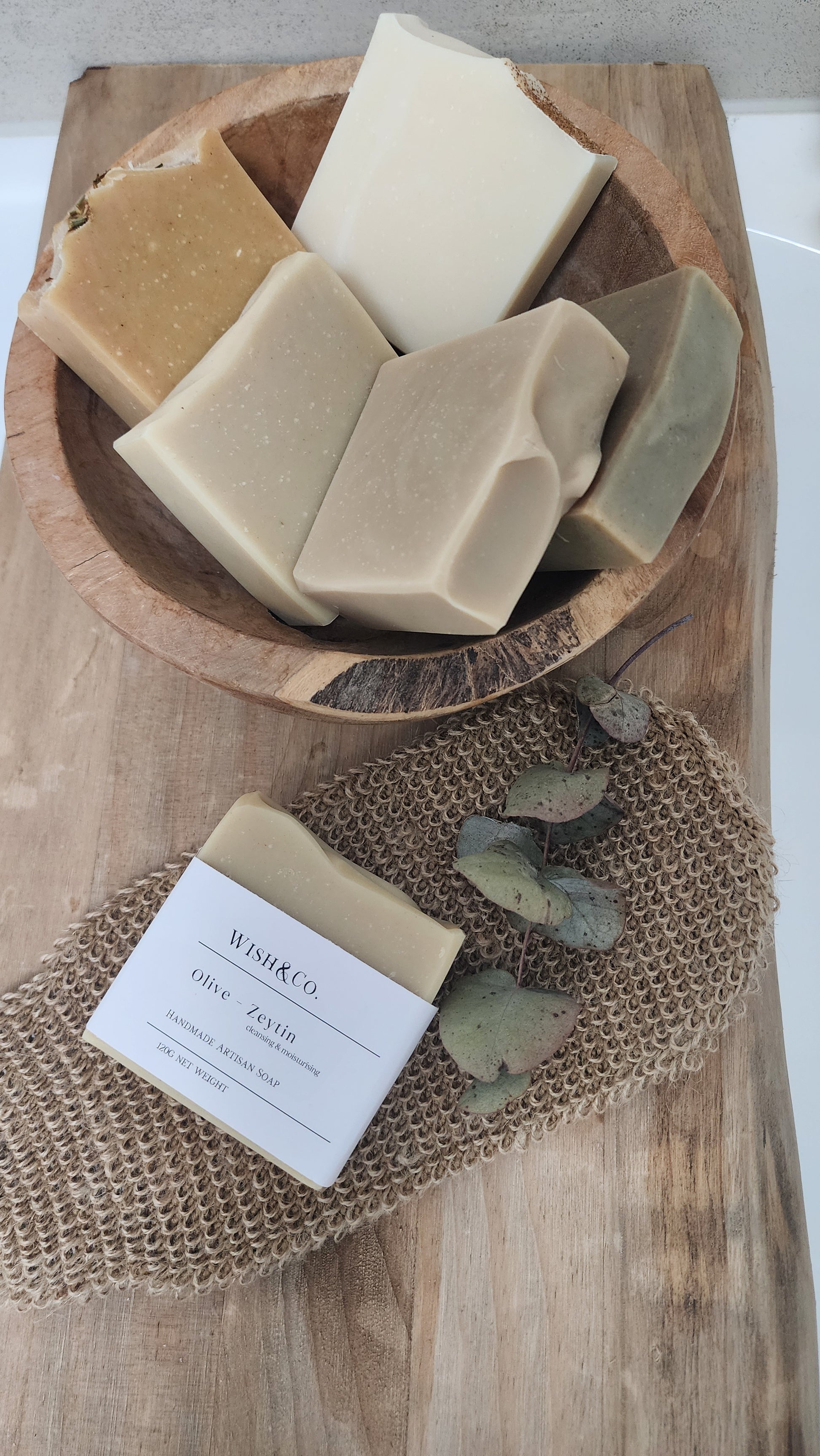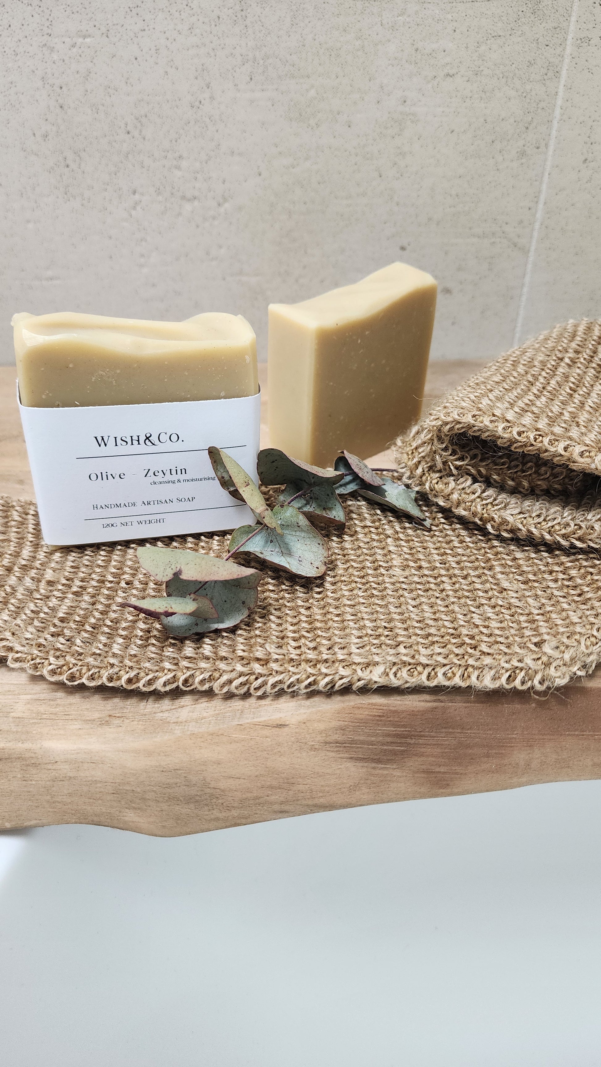 A creamy olive soap with a natural touch of fine olive stone powder — gentle daily exfoliation for silky, healthy skin.