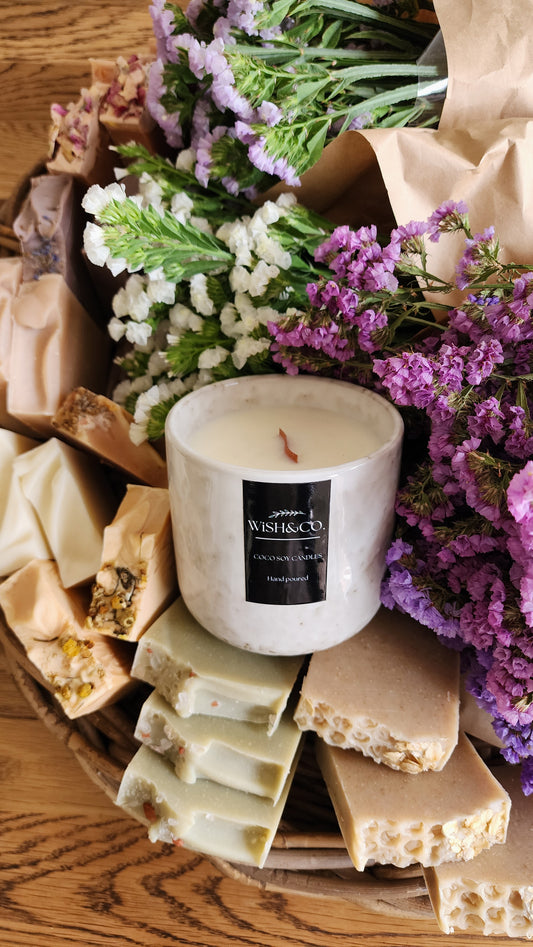 At Wish&Co, we believe in the power of simplicity and nature.Our tallow balm & soap products are made with thoughtfully chosen ingredients, free from unnecessary synthetics, harsh preservatives, and artificial fragrances. While our skincare range remains completely natural, our candles and custom creations may include high-quality fragrance oils and cosmetic-grade micas for beautiful colour and scent.